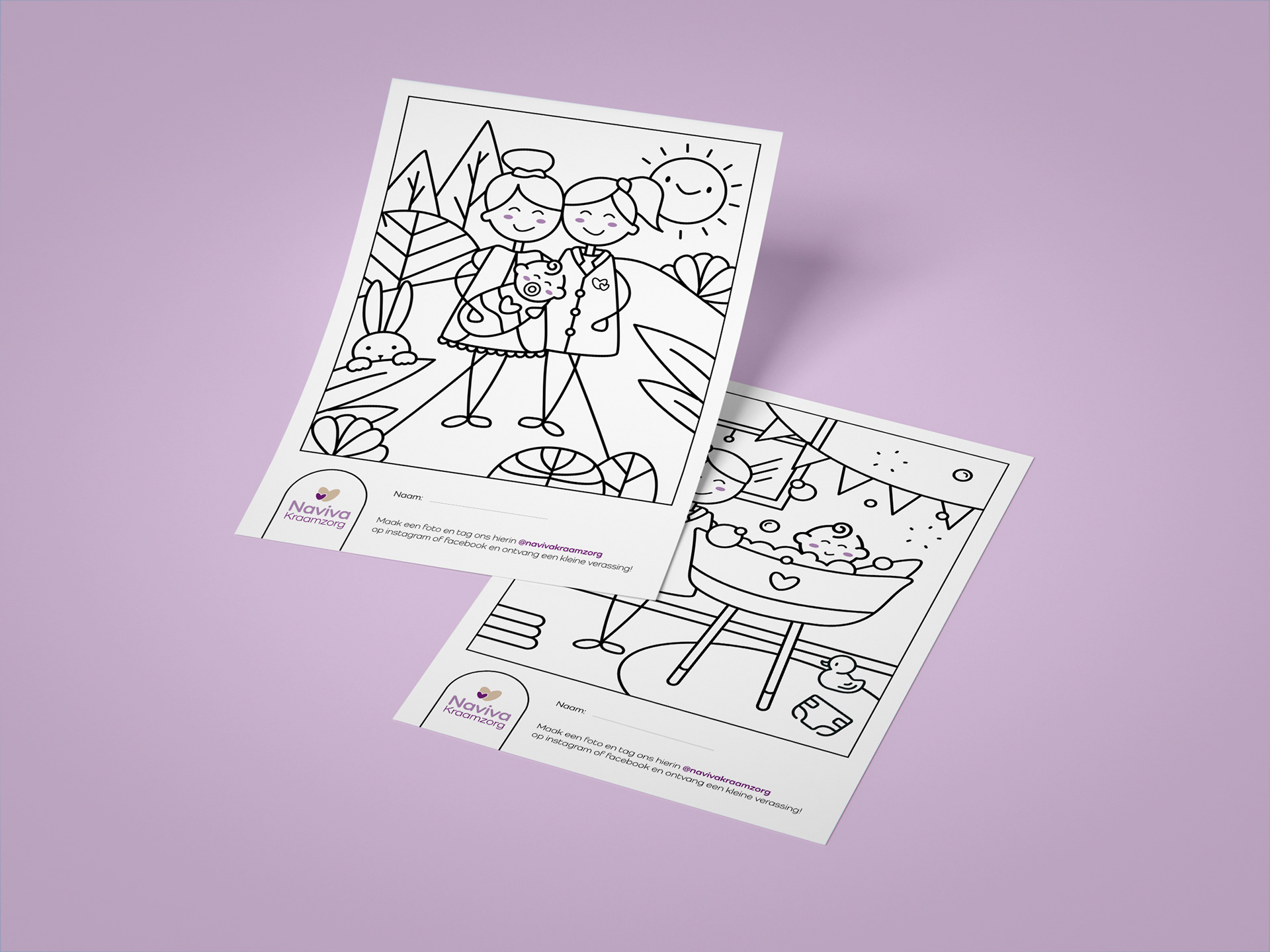 Ontwerp verschillende kleurplaten voor Naviva Kraamzorg